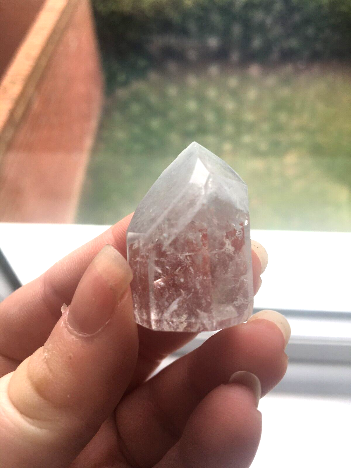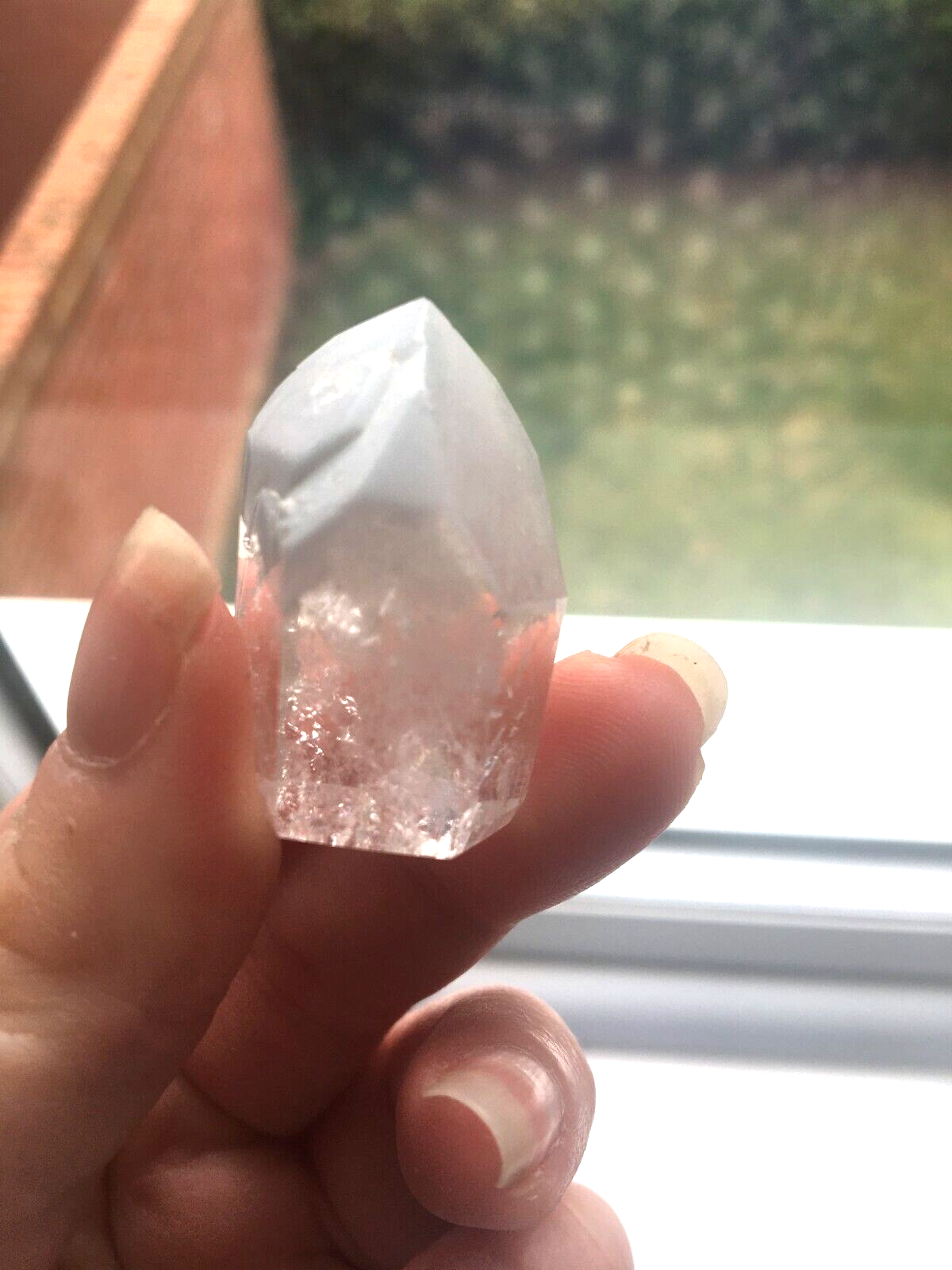 Extra high quality Brazilian blue Tara quartz crystal point sourced from Brazil. Blue Tara quartz is a clear with blue hues. It’s a rare crystal named after the Blue Tara goddess, a Buddhist deity.