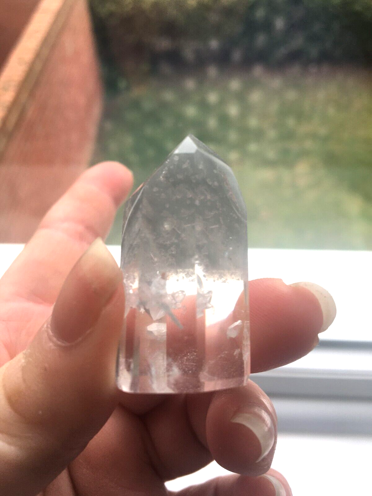 Extra high quality Brazilian blue Tara quartz crystal point sourced from Brazil. Blue Tara quartz is a clear with blue hues. It’s a rare crystal named after the Blue Tara goddess, a Buddhist deity.