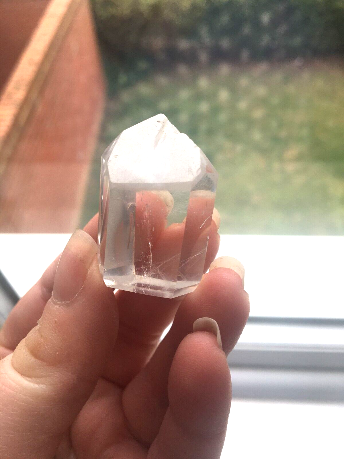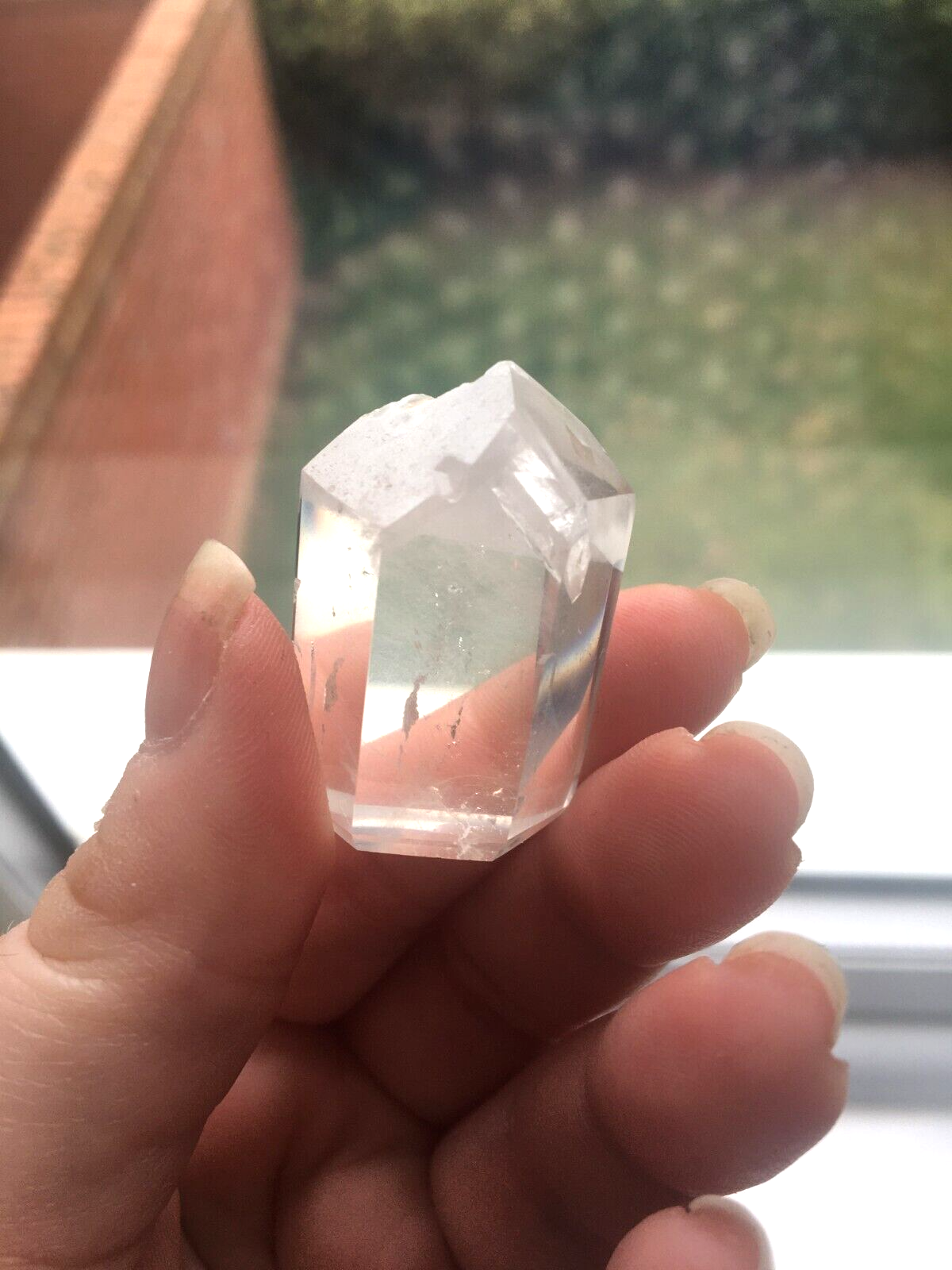 Extra high quality Brazilian blue Tara quartz crystal point sourced from Brazil. Blue Tara quartz is a clear with blue hues. It’s a rare crystal named after the Blue Tara goddess, a Buddhist deity.