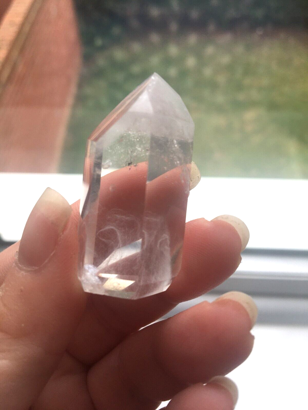 Extra high quality Brazilian blue Tara quartz crystal point sourced from Brazil. Blue Tara quartz is a clear with blue hues. It’s a rare crystal named after the Blue Tara goddess, a Buddhist deity.