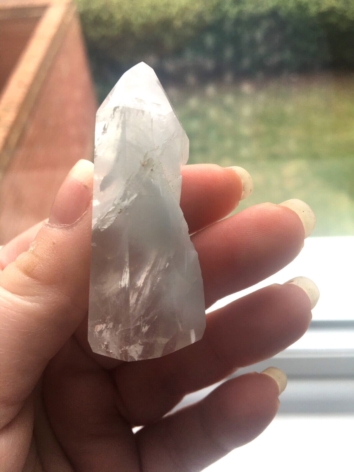 Extra high quality Brazilian blue Tara quartz crystal point sourced from Brazil. Blue Tara quartz is a clear with blue hues. It’s a rare crystal named after the Blue Tara goddess, a Buddhist deity.