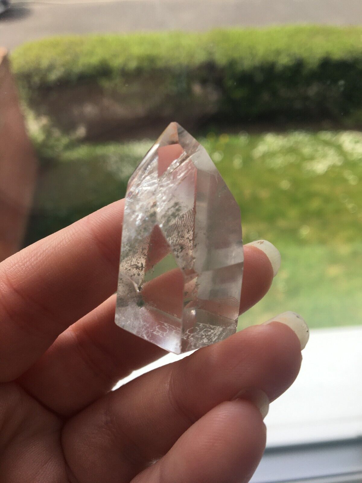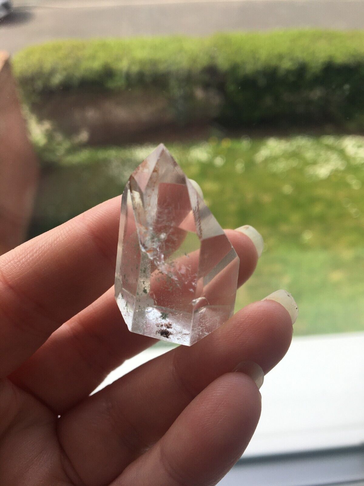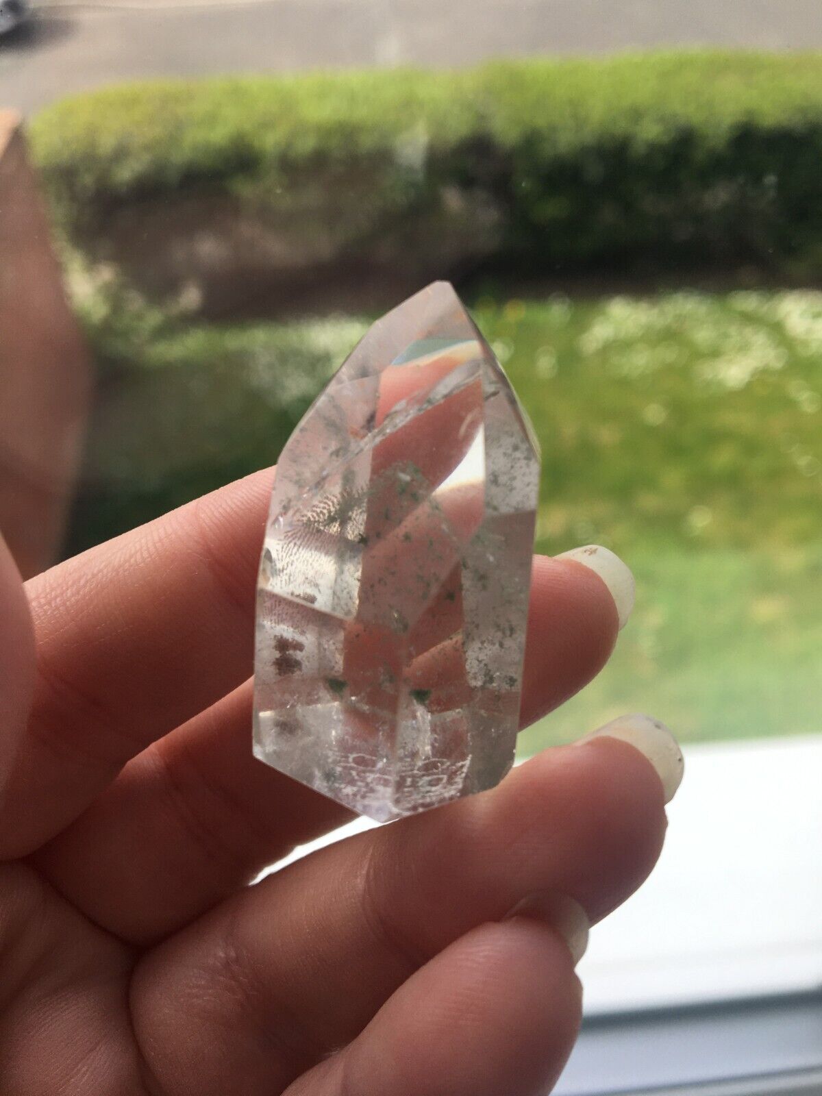 Extra high quality Brazilian chlorite quartz chunky crystal point sourced from Brazil. The clarity is very clear on this crystal which makes it higher grade. It’s clear with green hues. The videos show the exact piece you will receive. 20g Measures: 3cm length x 1.7cm width.