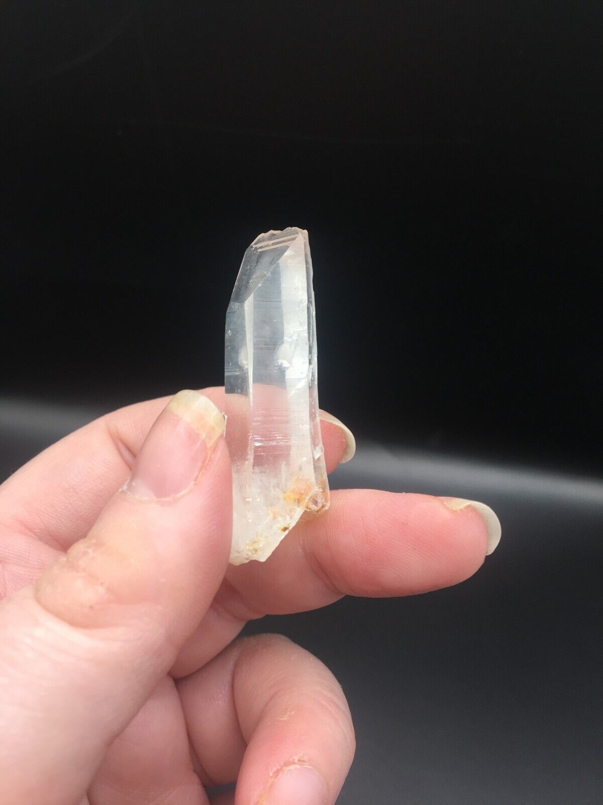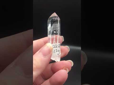 High quality Lemurian Seed Quartz point also known as Lemurian Star Seed Quartz sourced from Colombia. Super clear clarity which shows the quality. The video shows the exact piece you will receive. 10 g Measures: approx. 4.5 cm height x 1 cm width. Card pictured is for information only (does not come with purchase).