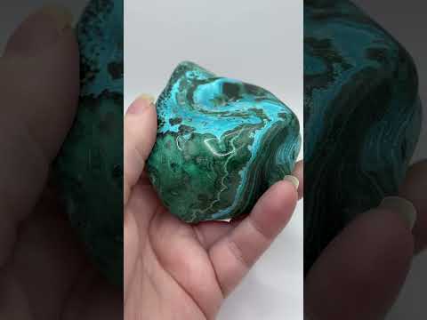 High quality mallacolla - this crystal is a naturally occurring combination of both malachite and chrysocolla sourced from the Congo. Each beautiful one-of-a-kind crystal has green malachite and turquoise hues of chrysocolla in stunning patterns. The video shows the exact piece you will receive. 275g Measures: approx. 7.5 cm diameter.