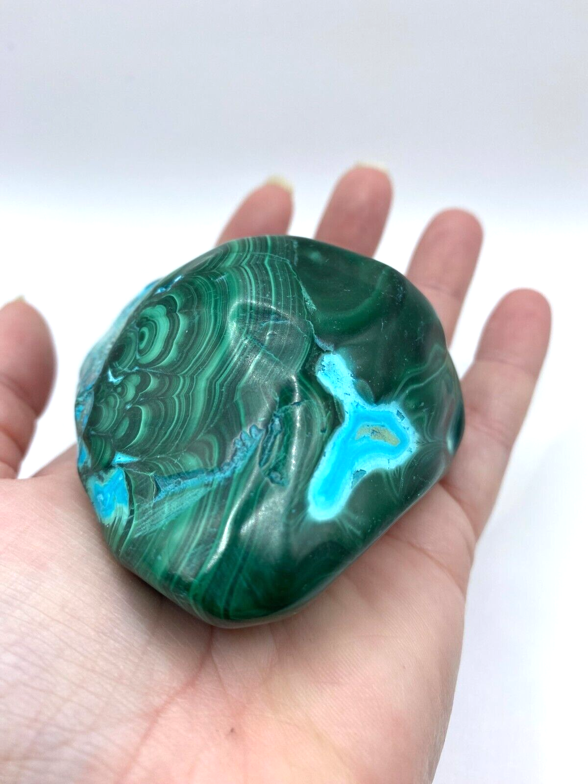 Please note - Malachite and Mallacolla should never be ingested, used in crystal infused water or put in water for prolonged periods. It should also not be cut/ ground/ shaped or worked without proper precautions and research.