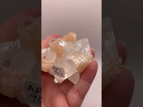 Rare apophyllite crystal cluster with peach stilbite sourced from Maharashtra, India. Stilbite was discovered in 1797 by a French mineralogist and is often found in combination with other minerals. Apophyllite by itself is a relatively common crystal that can be found in many locations throughout the world, the combination with stilbite makes this crystal unique and a rare find that is highly regarded by mineral collectors. Apophyllite with stilbite is believed to be a very spiritual crystal, it is good for meditation, dream work and accessing the Akashic records. It is believed to powerfully cleanse the aura, removing negative attachments and helping us to get rid of things that no longer serve us. Often known as the stone of truth, apophyllite with stilbite helps us to get in touch with our higher self and access truths we may not have realized about ourselves. It is a wonderful stone for inner child work. It's a lovely rare mineral specimen for display, it has a very gemmy appearance and glitters in the light.
